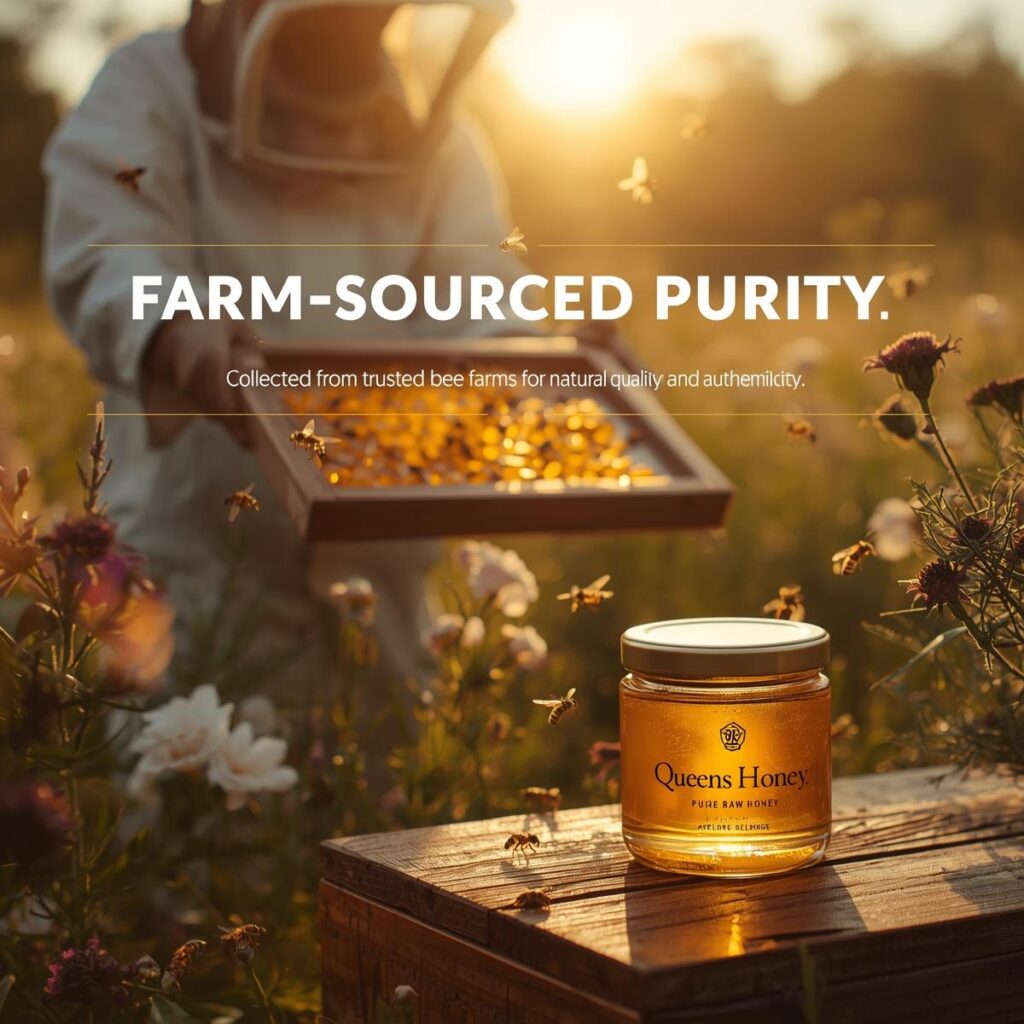 QueensHoney is carefully sourced directly from trusted bee farms where bees thrive in clean, natural environments. This ensures every drop of honey is pure, unprocessed, and rich in natural nutrients. Farm-sourced honey maintains its original taste, thickness, and health benefits without sugar mixing or harmful additives. By choosing QueensHoney, you experience authentic honey crafted by nature and delivered with complete purity, quality, and trust.