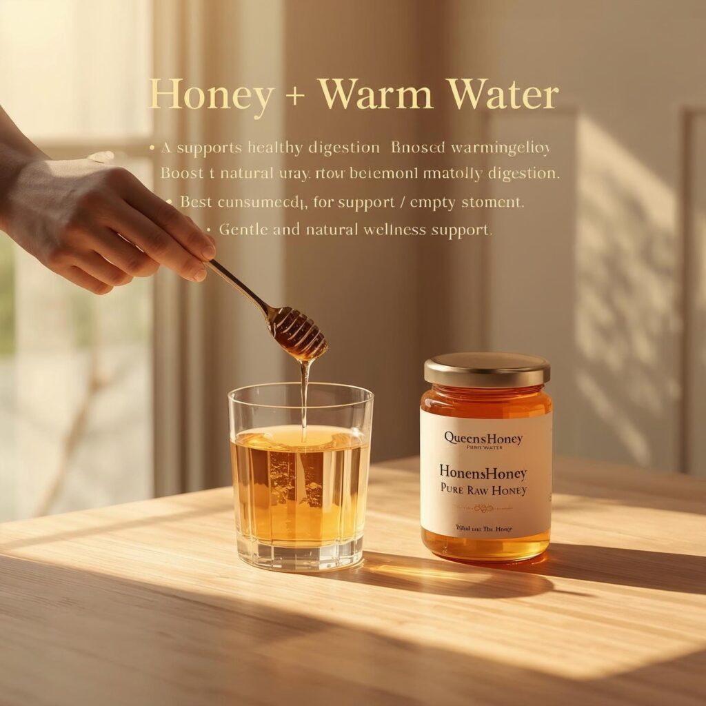 Pure raw honey is known for its natural enzymes and antibacterial properties that help improve digestion and support a healthy gut. It helps soothe the digestive system, promotes better nutrient absorption, and may reduce common stomach discomfort. Consuming farm-sourced, unprocessed honey like QueensHoney with warm water is a natural and effective way to maintain digestive balance. Rich in beneficial compounds, pure honey supports overall digestive wellness while providing a gentle, natural solution for a healthier lifestyle.